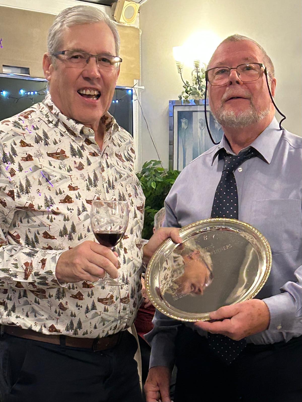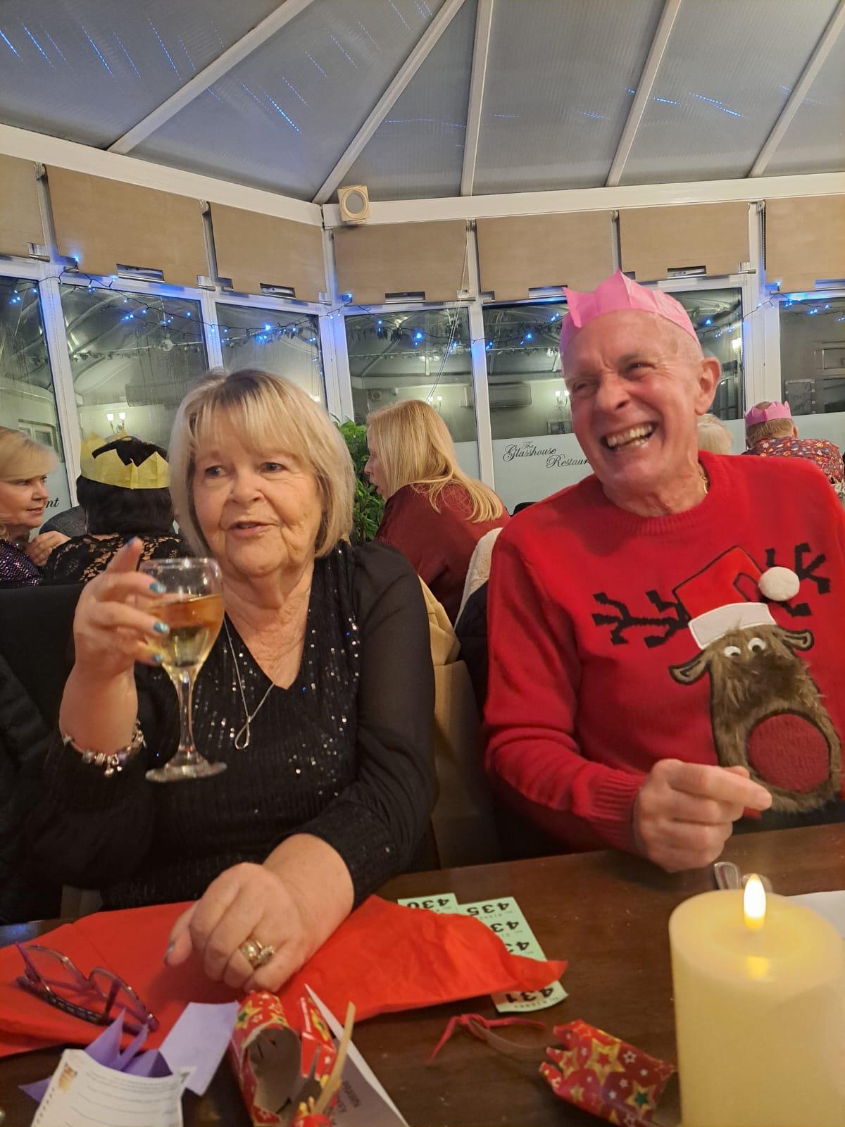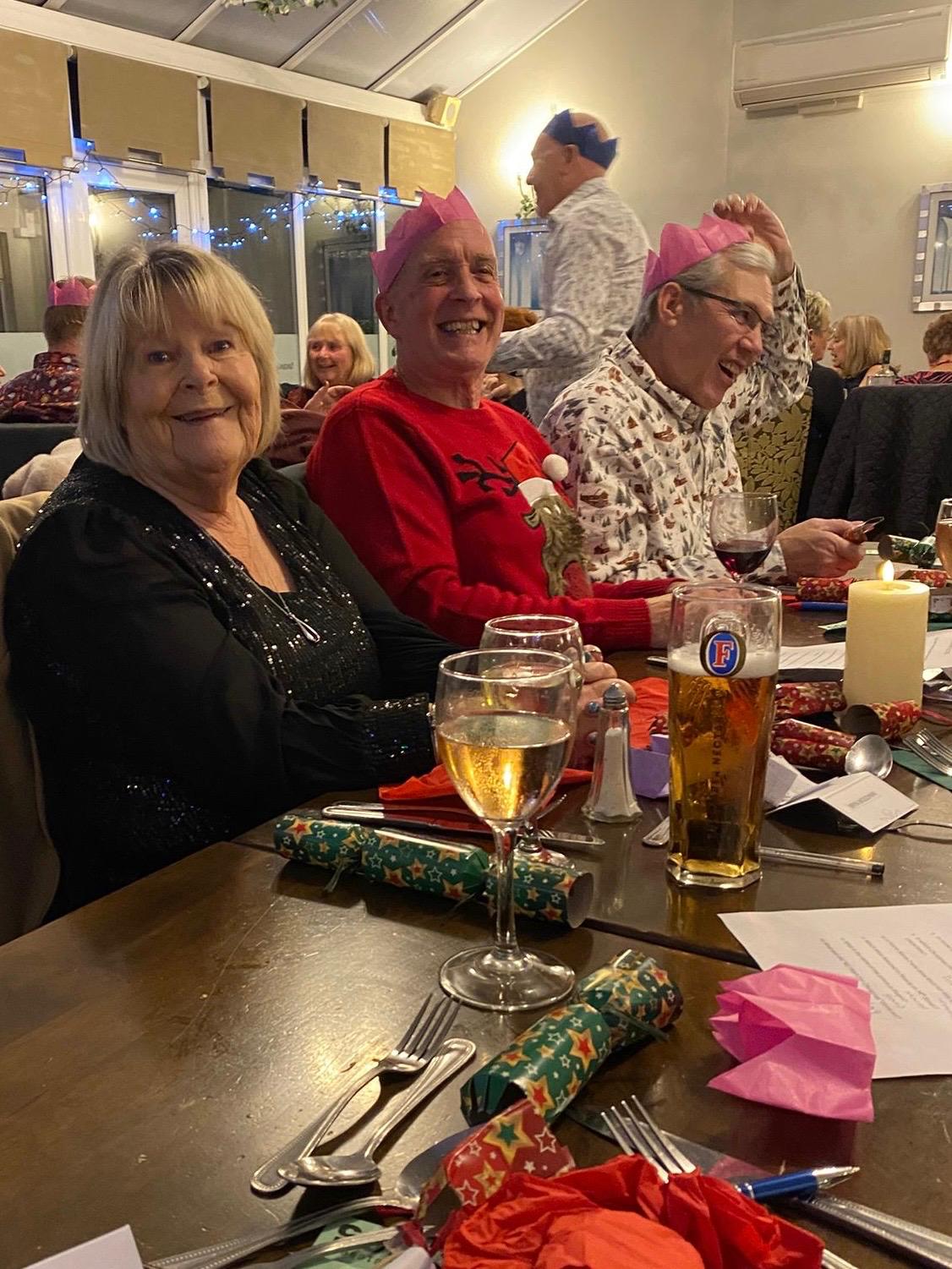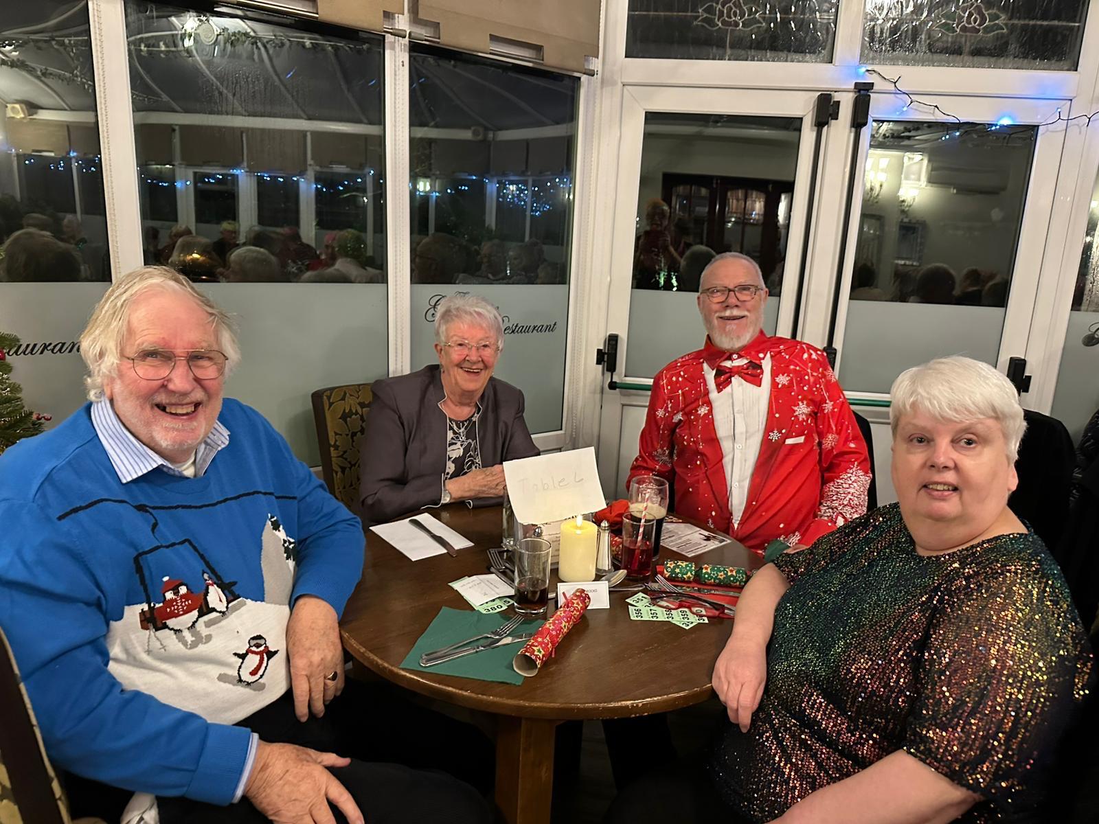 Good food and a drink or two – after the main course, it was the quiz.   For some years the quiz has been set by our late Chairman, Tom Mills.  Even whilst ill Tom and his wife, Barbara, had put together this year’s quiz, and I can just imagine them laughing and thinking, that’ll stump them!  Two parts to the quiz – Christmas Music and Christmas Films – some really had us beaten but, in the end, it was a close finish with the winning table just two points clear.
