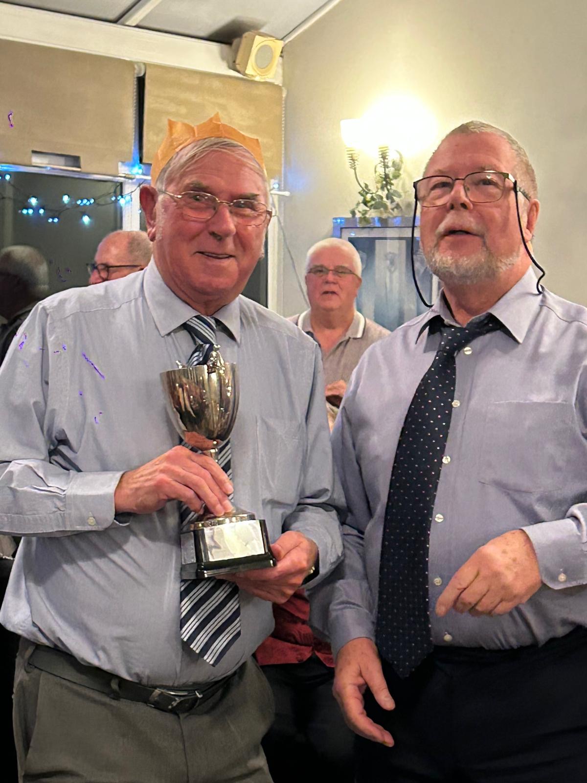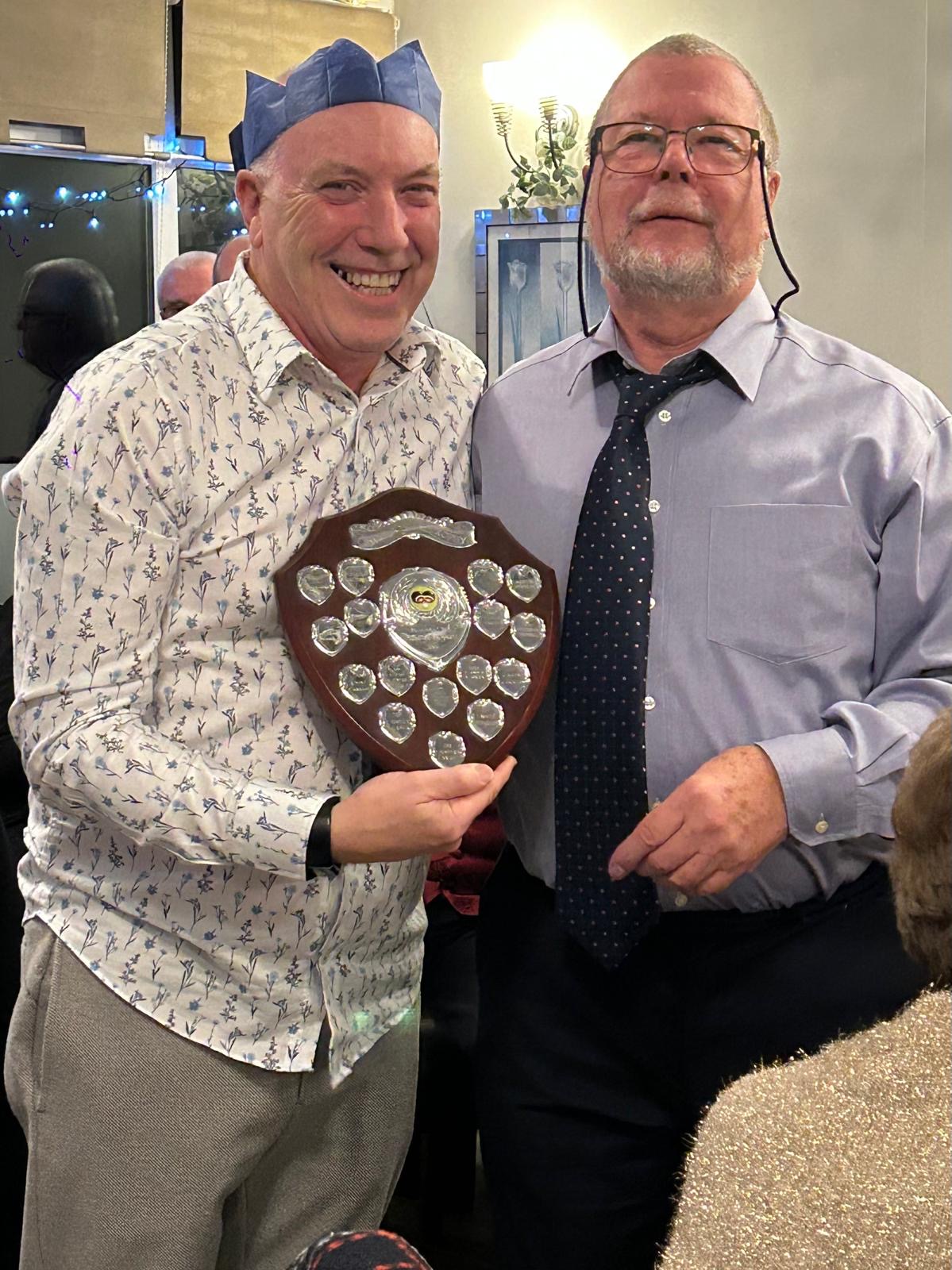 In other news – Ian Hennessey and Chas Garnish attended the annual C & D Awards dinner.  On behalf of the club, they were presented with the floating Division 3 trophy, duly engraved with 2023 South Woodham Ferrers, a C&D pennant saying Division 3 champions, a cheque for £75 and 16 individual medals for those members who helped achieve that Championship. Glen Williams also attended and was presented as runner-up in the Unbadged Singles.  Congratulations to all the men who played their part.